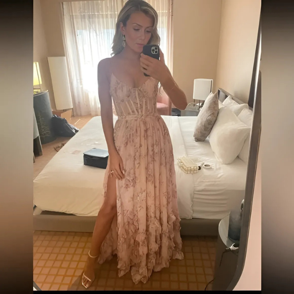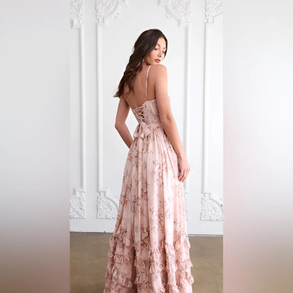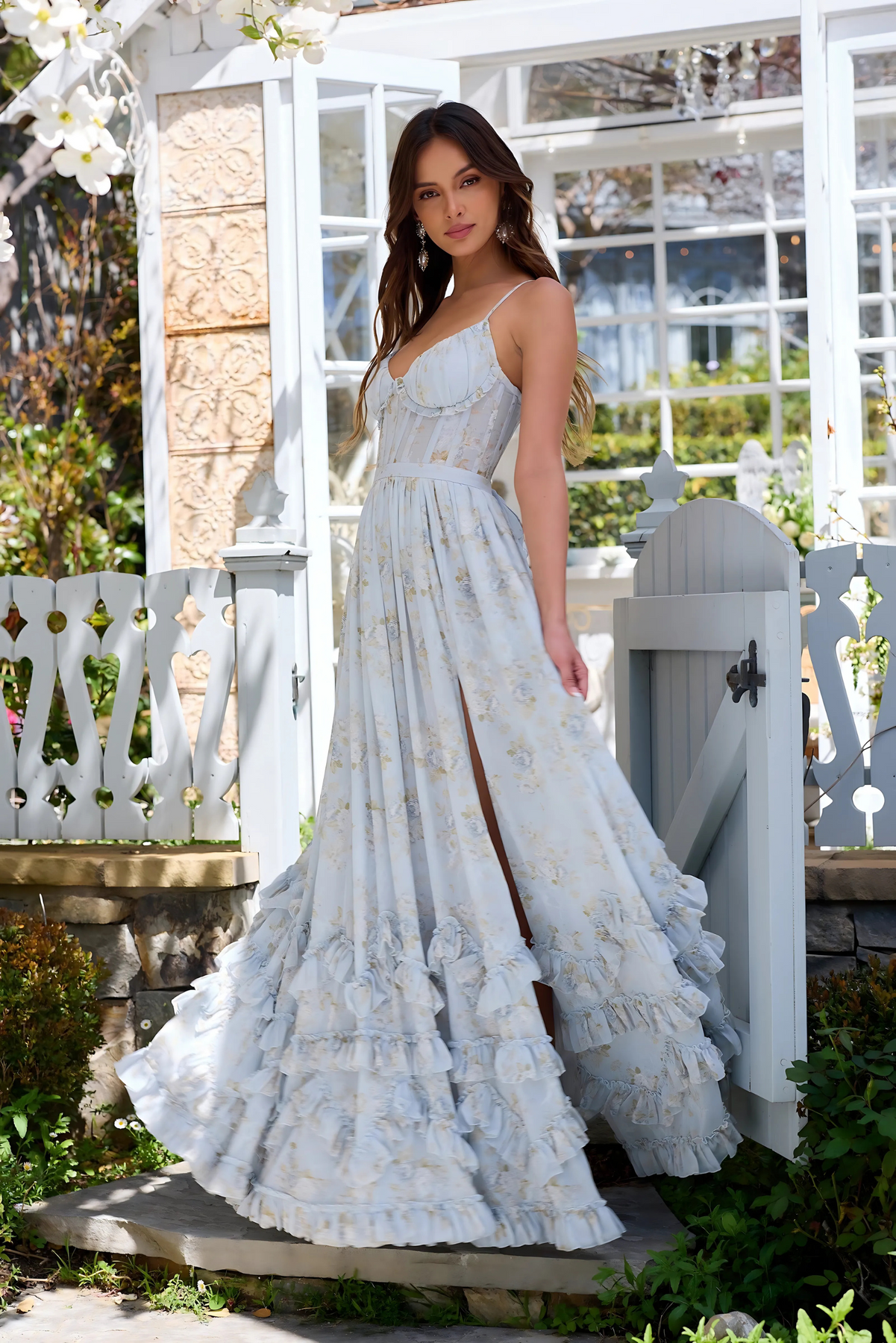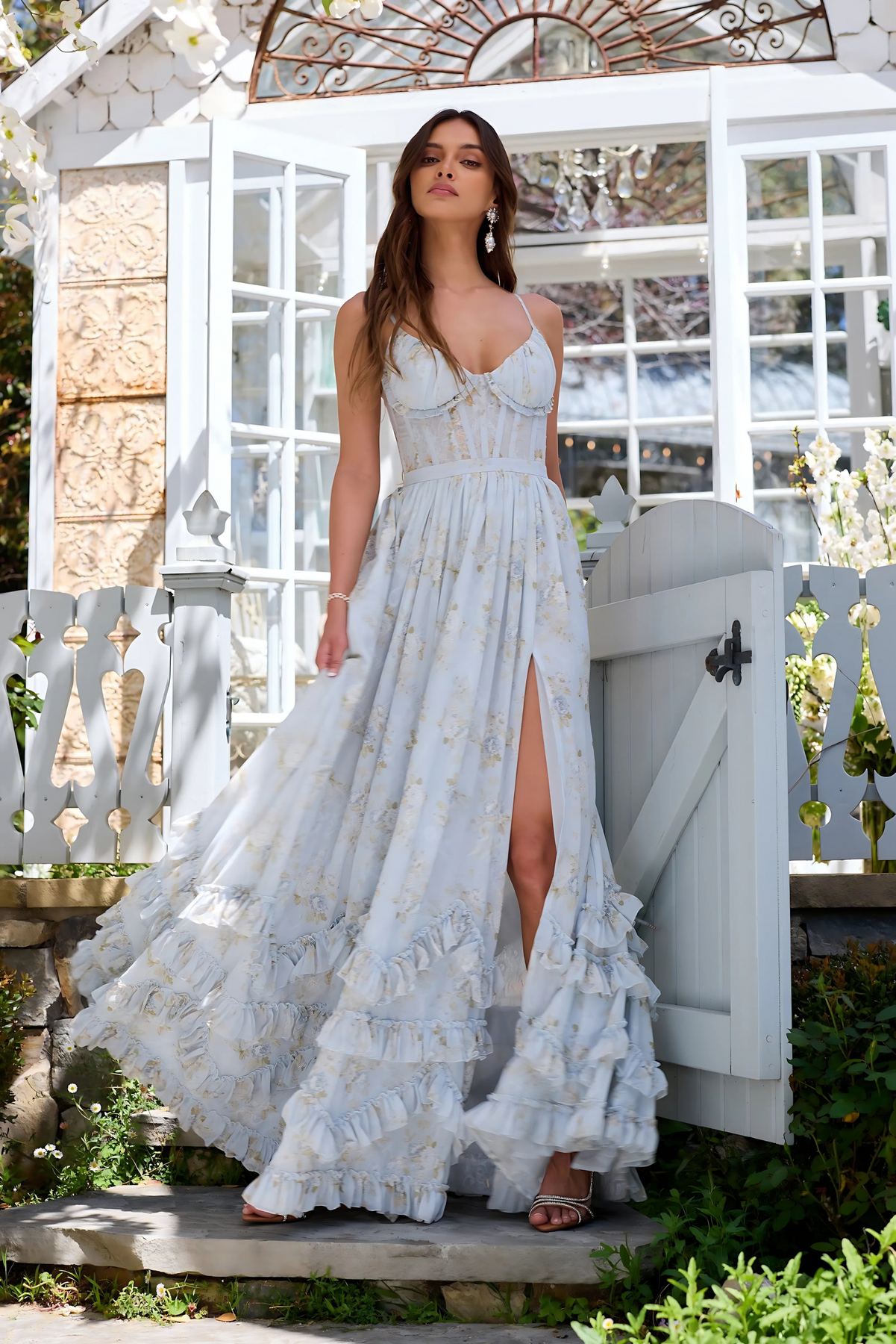 Ruffles & Slit: The combination of playful ruffles and a high slit adds romance and expression to the outfit.